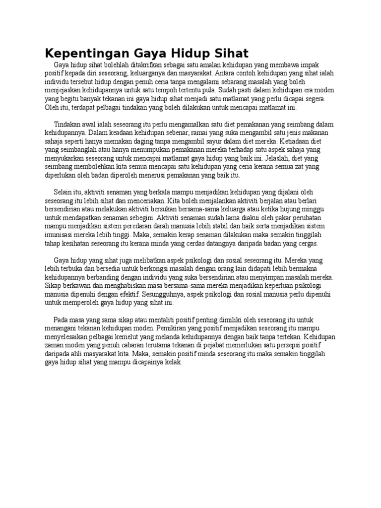 Kepentingan Mengamalkan Gaya Hidup Sihat Pdf